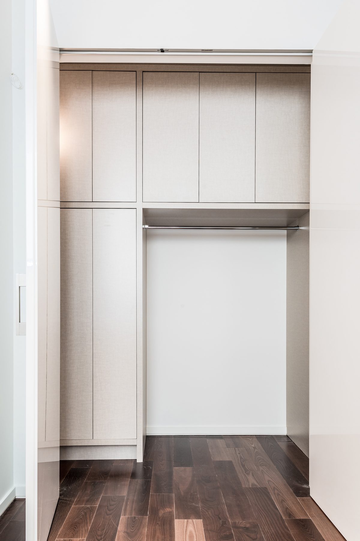 Aménagement de garde-robe sur mesure dans une maison moderne.