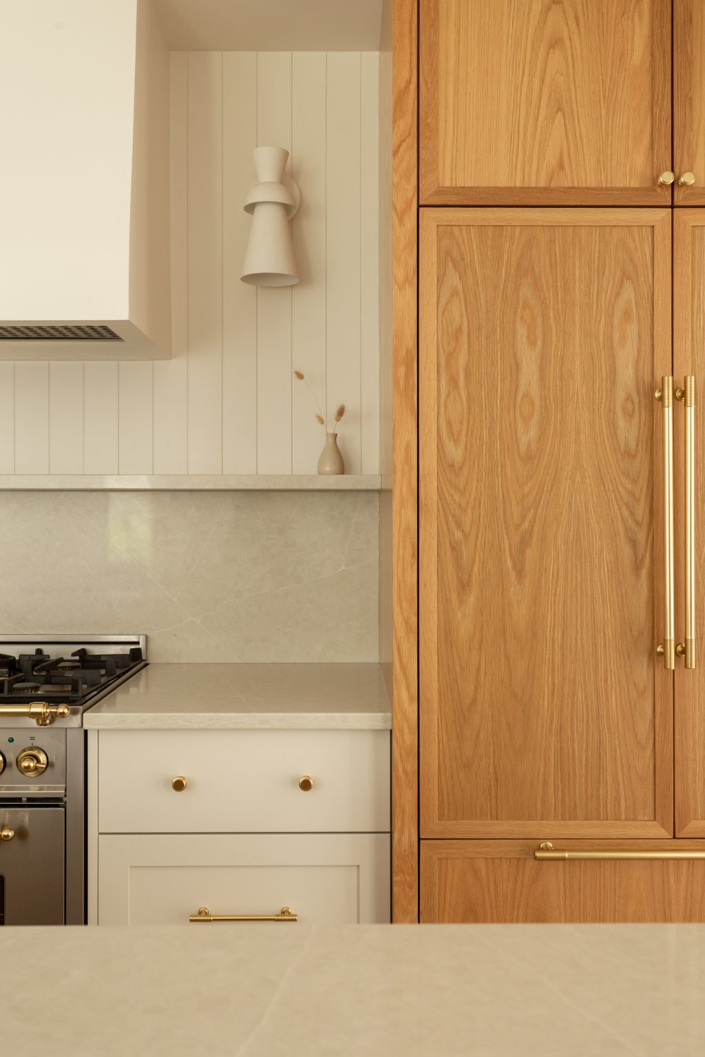 La cuisine Lifestyle Île-des-Sœurs, avec des portes d’armoires de notre collection Bois en chêne teint et de Évoquente en polymère, Ateliers Jacob.