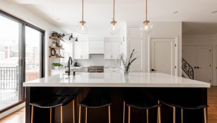 Avec une cuisine blanche, il suffit de placer ces matériaux aux niveaux des poignées de vos armoires et quelques autres éléments décoratifs pour changer complètement l’ambiance de l’espace.