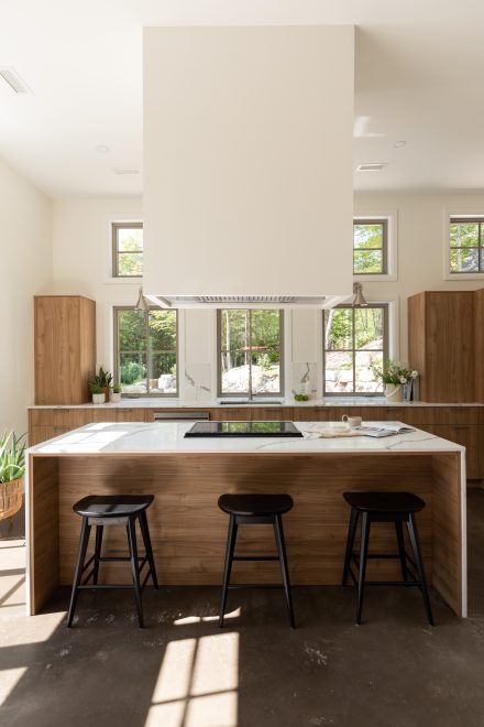 The client’s request was to imagine a kitchen space for a family home where several generations live together daily. Neutral, soft and natural tones were our focus