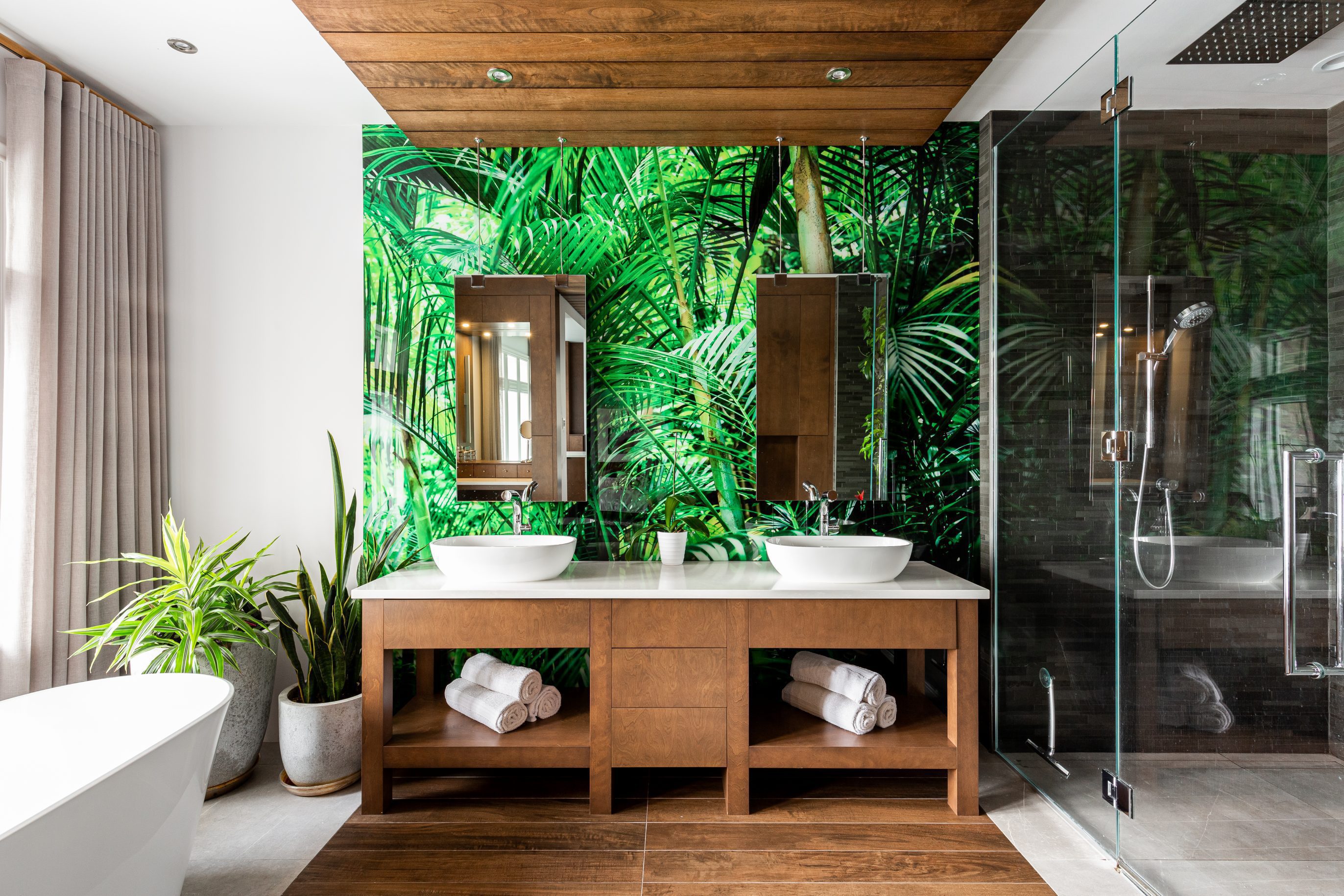 This unique bathroom with the theme of Bali and its tropics is ideal to feel on vacation in one’s own home.Extravagant and unprecedented, this bathroom is a perfect example that our projects are created according to the wishes of our customers.