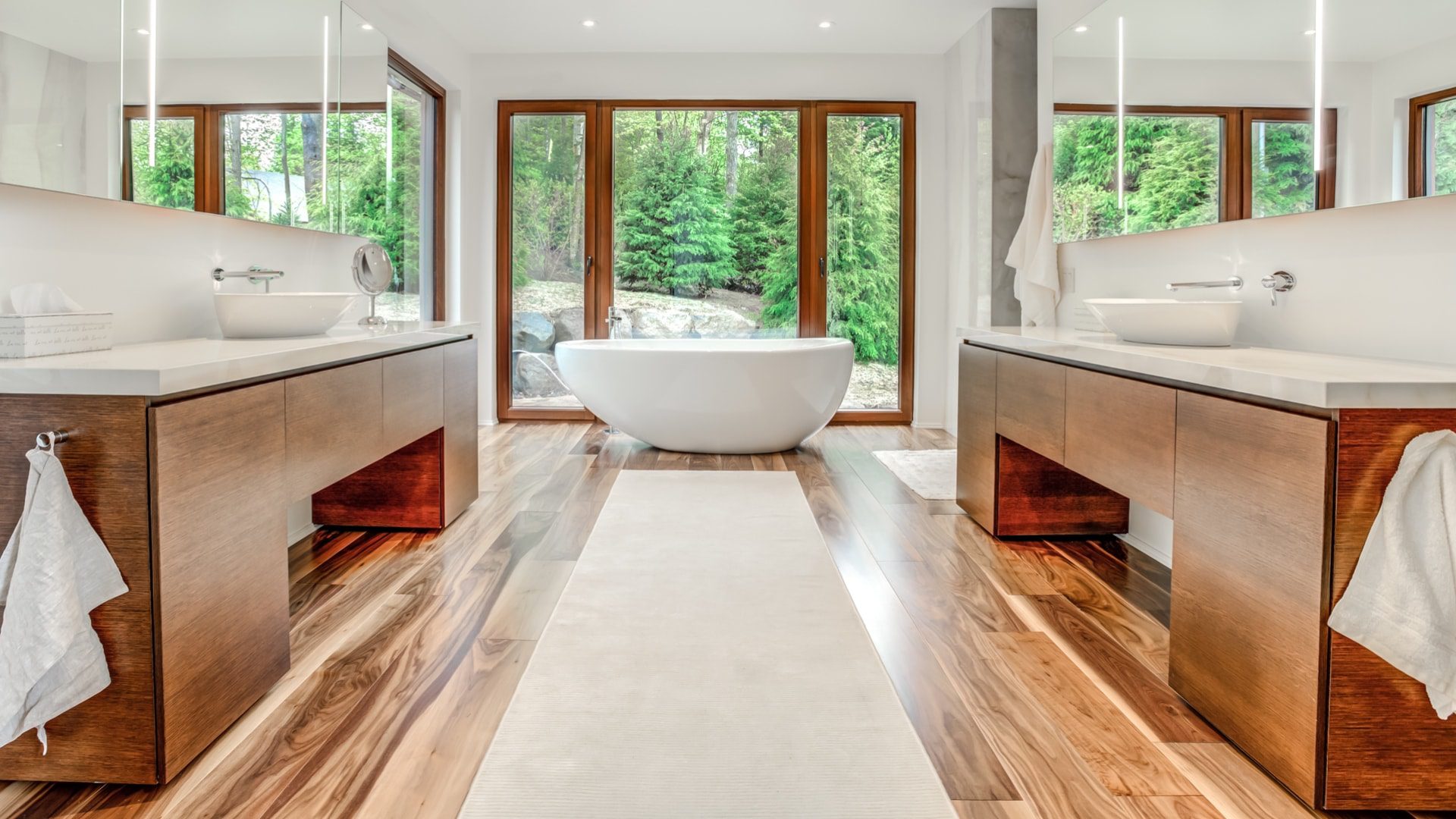 Experience a cozy ambiance in this Zen-inspired master bathroom, the perfect place to start your day.
