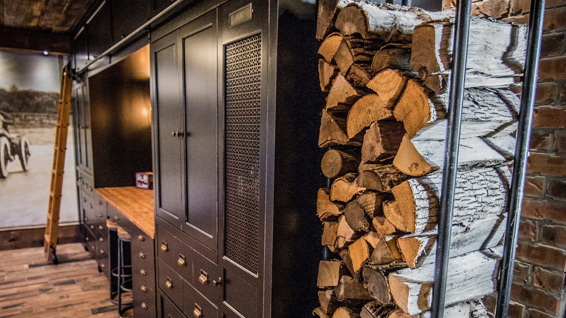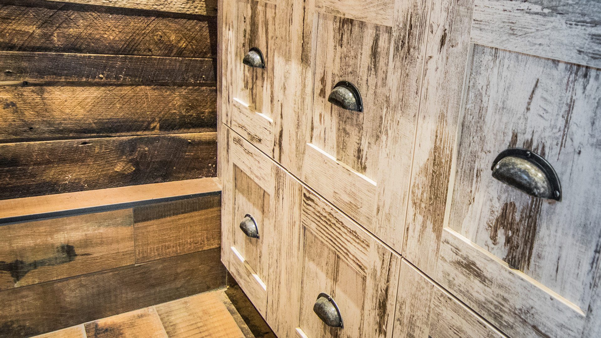 Our designers also thought of a sideboard made of rough chic synthetic to facilitate hand washing. From the heights of the ceiling to the depth of the floor and everything between, the designers captured warmth, strength, industry and function with each element in this utilitarian space.