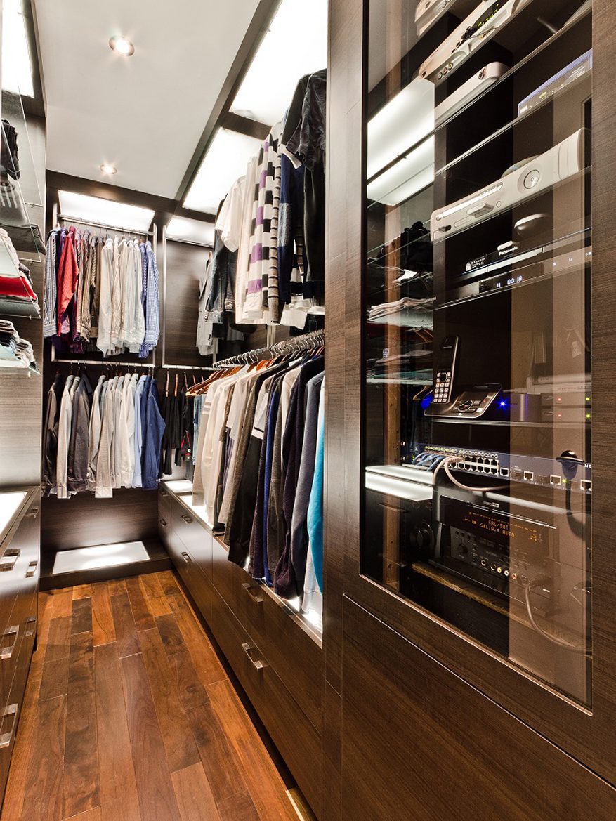 Melamine and glass walk-in closet