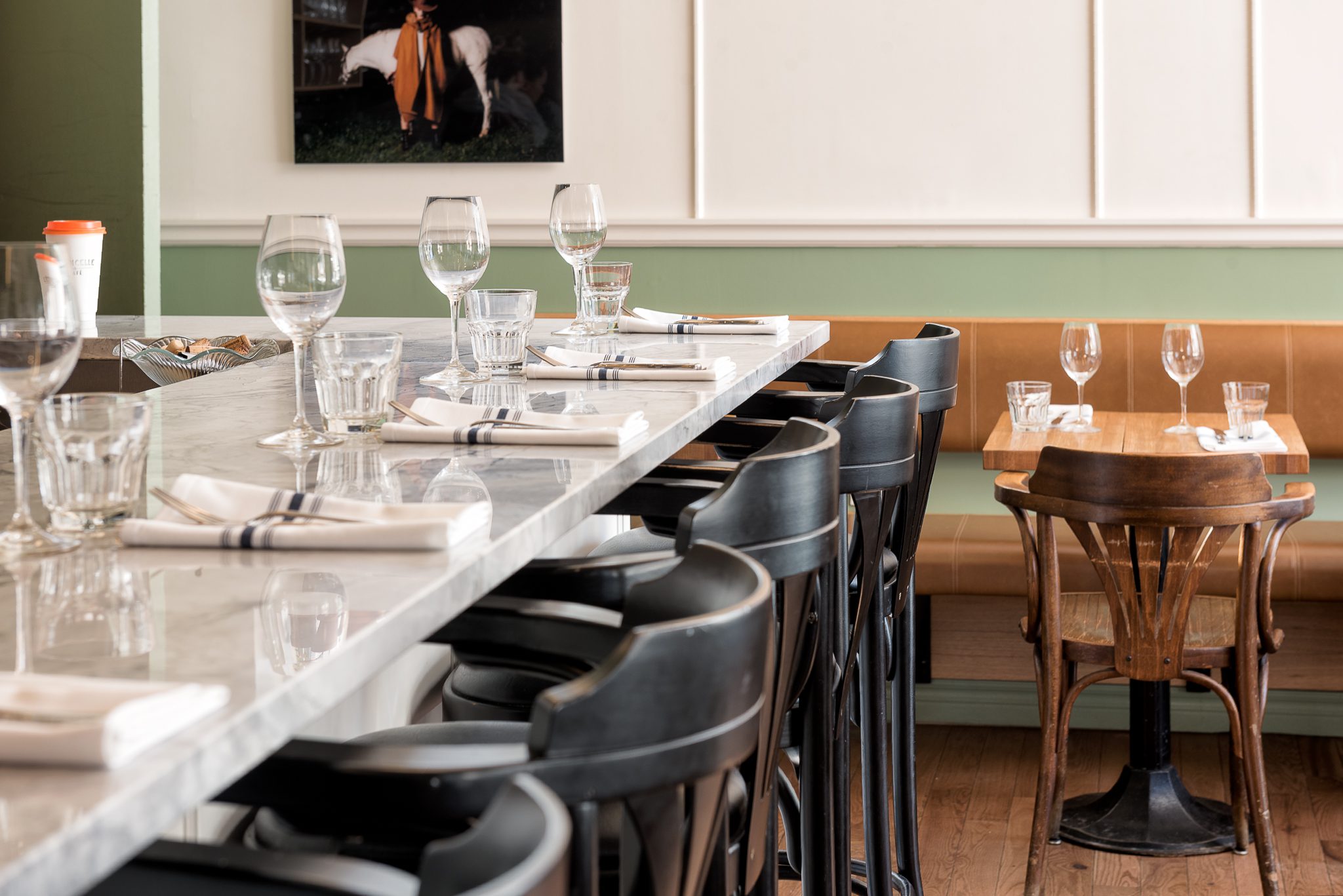 In 2018, we had the privilege to work on the exquisite Moccione restaurant, located in the bustling district of Villeray in Montreal. Collaborating with Luca and Maxime, two enthusiastic and creative young restaurateurs, was an absolute pleasure. Their vision for a welcoming neighbourhood eatery that would cater to a diverse clientele, while maintaining a cozy, unassuming atmosphere was truly inspiring. The result is a space that radiates warmth and simplicity, inviting everyone to feel at home.