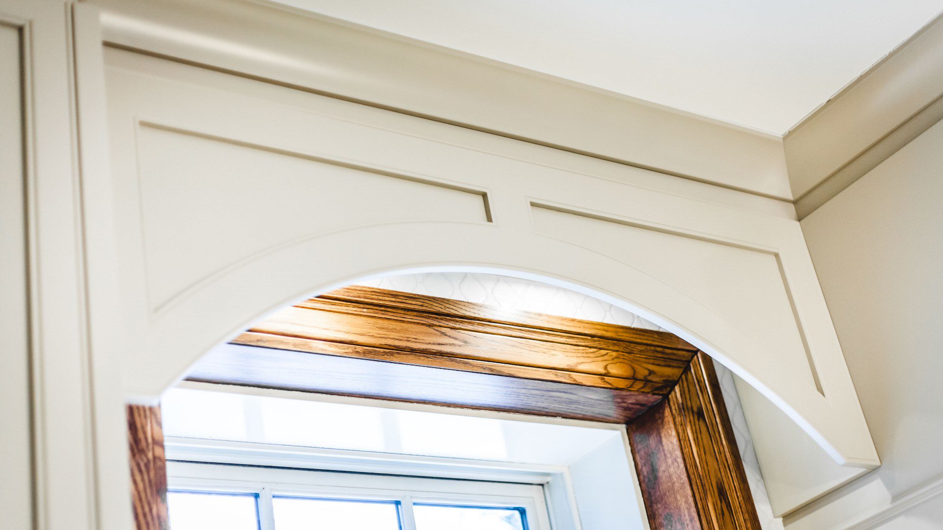 Looking at the focal point of the room, the solid center island, one notices the skillful cabinetry work that produced compact yet spacious, well-placed, yet overflowing oak kitchen cabinets. The molding color inspired us to apply that element to the wood and the result was that it tied together the whole space as if one used the same beautiful, wooden element. Note, too, that the white lacquered MDF cabinets and drawers work together as if they were one and of the same material.