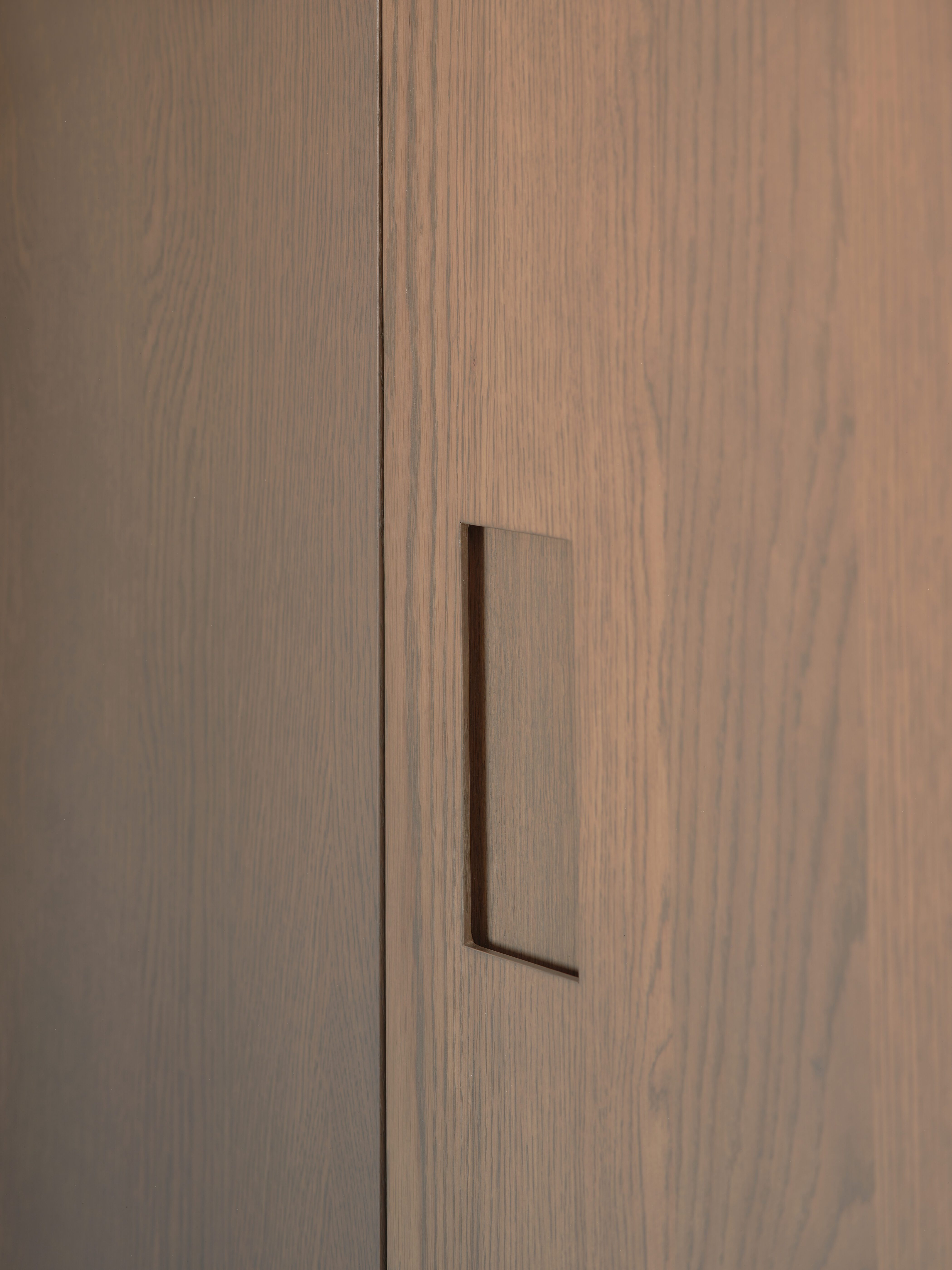 The island fronts and full-height cabinets are clad in Ateliers Jacob’s Bois collection. This carefully selected oak veneer, known for its high quality, features a warm tone and fine grain that add rich texture while gently contrasting with the immaculate quartz. This material choice lends the space timeless elegance and anchors the kitchen in an organic, enveloping aesthetic.
