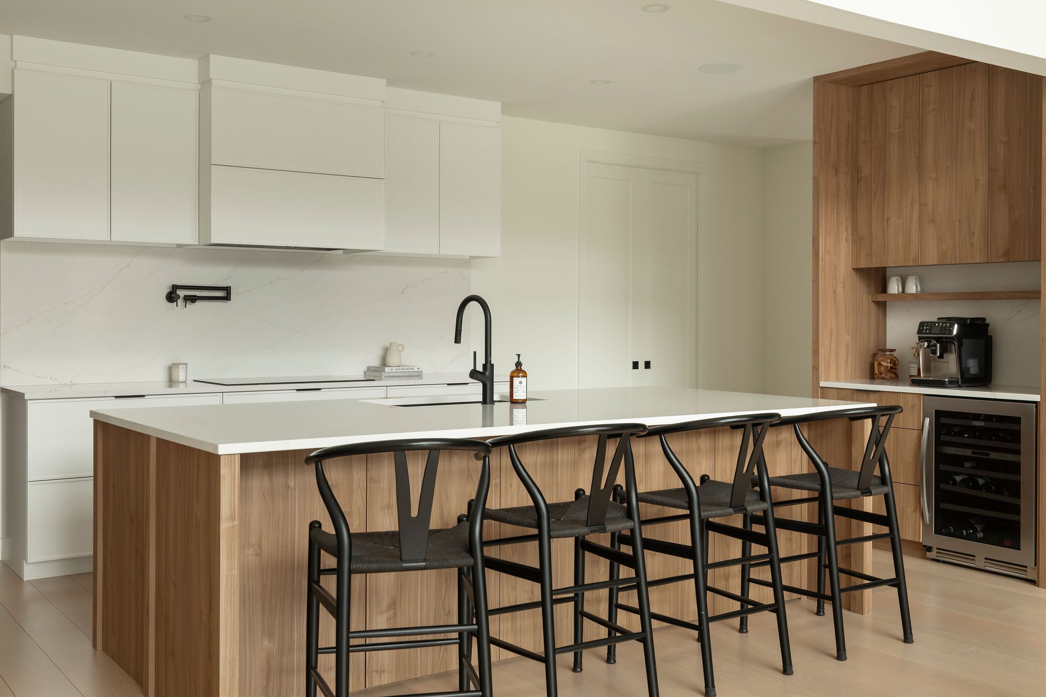 Here, simplicity is essential: clean lines, precise details, and a refined aesthetic create a soothing atmosphere. Chosen for their enduring beauty, the materials infuse the space with elegance that stands the test of time. Timeless yet resolutely modern, this kitchen goes beyond functional to become a discreet decor, perfectly aligned with the lifestyle of those who live there.